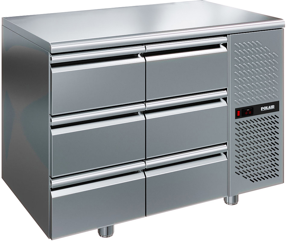 Холодильный стол POLAIR TM2GN-33-G серии Grande предназначен для хранения продуктов и обработки ингредиентов на рабочей поверхности на предприятиях общественного питания и торговли. Модель оснащена 6 ящиками среднего размера. Цельнозаливной корпус и ящики изготовлены из нержавеющей стали, обеспечивающей механическую прочность, термоизоляцию, герметичность и долговечность стола. Оборудование рассчитано на работу при температуре окружающей среды до 43 °С и относительной влажности воздуха до 80%.